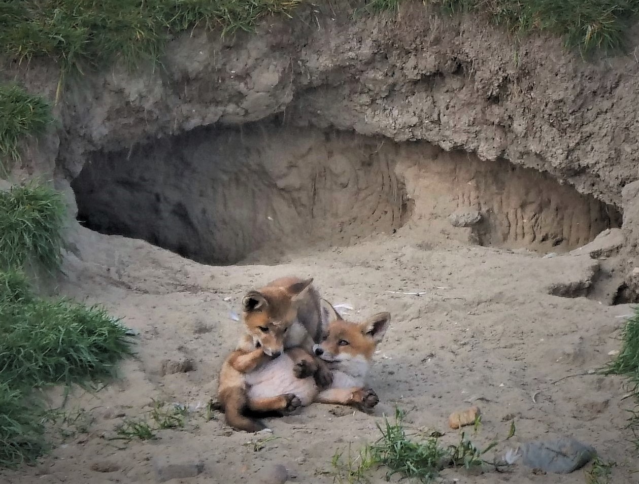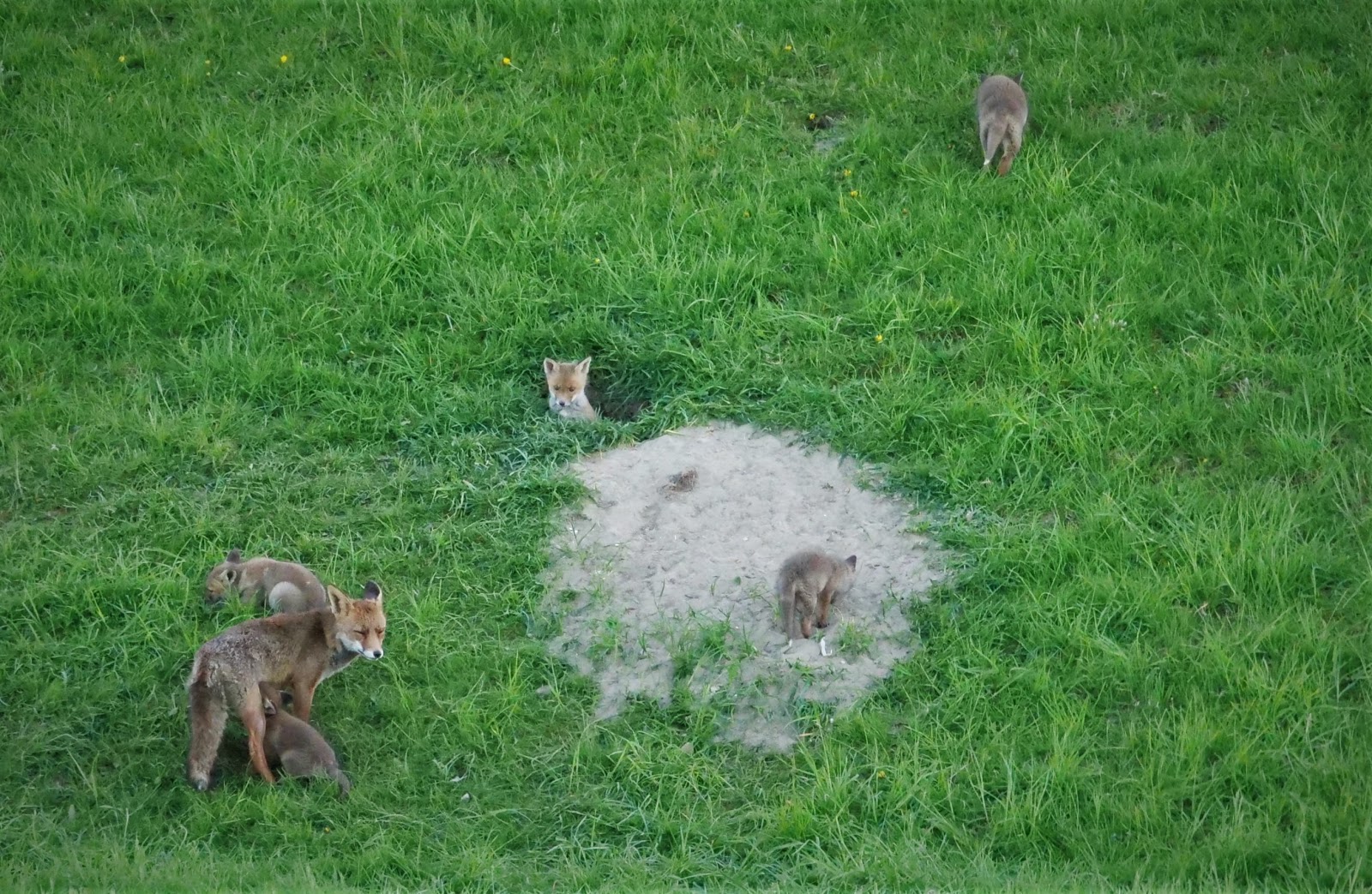 Deze vossen zijn ingeburgerd in dit gedeelte van Katwijk ..En geen onbekende voor de buurtbewoners hier. De schapen lijken nog het grootste gevaar op te leveren voor de vos en zijn welpen